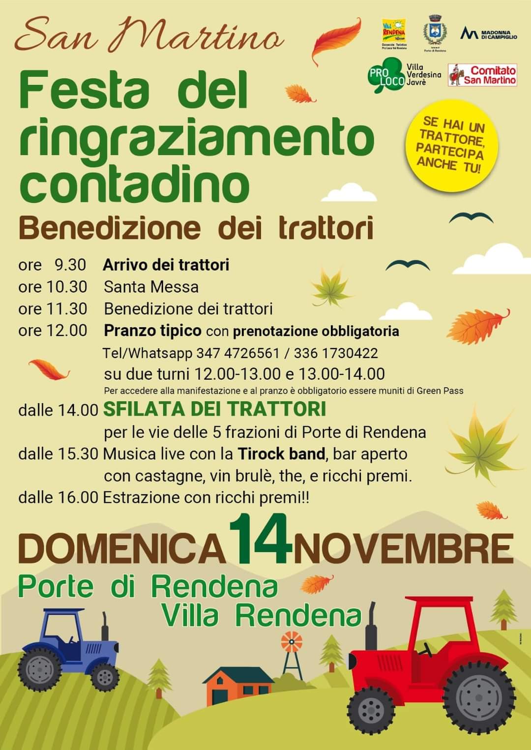 Per accedere alla manifestazione è necessario il Green pass. Nel pomeriggio, alle 14 l’attesa sfilata dei trattori per le 5 frazioni di Porte di Rendena e, dalle 15.30, musica con la Tirock band, bar aperto con castagne, vin brulè, the. Alle 16 estrazione con ricchi premi.