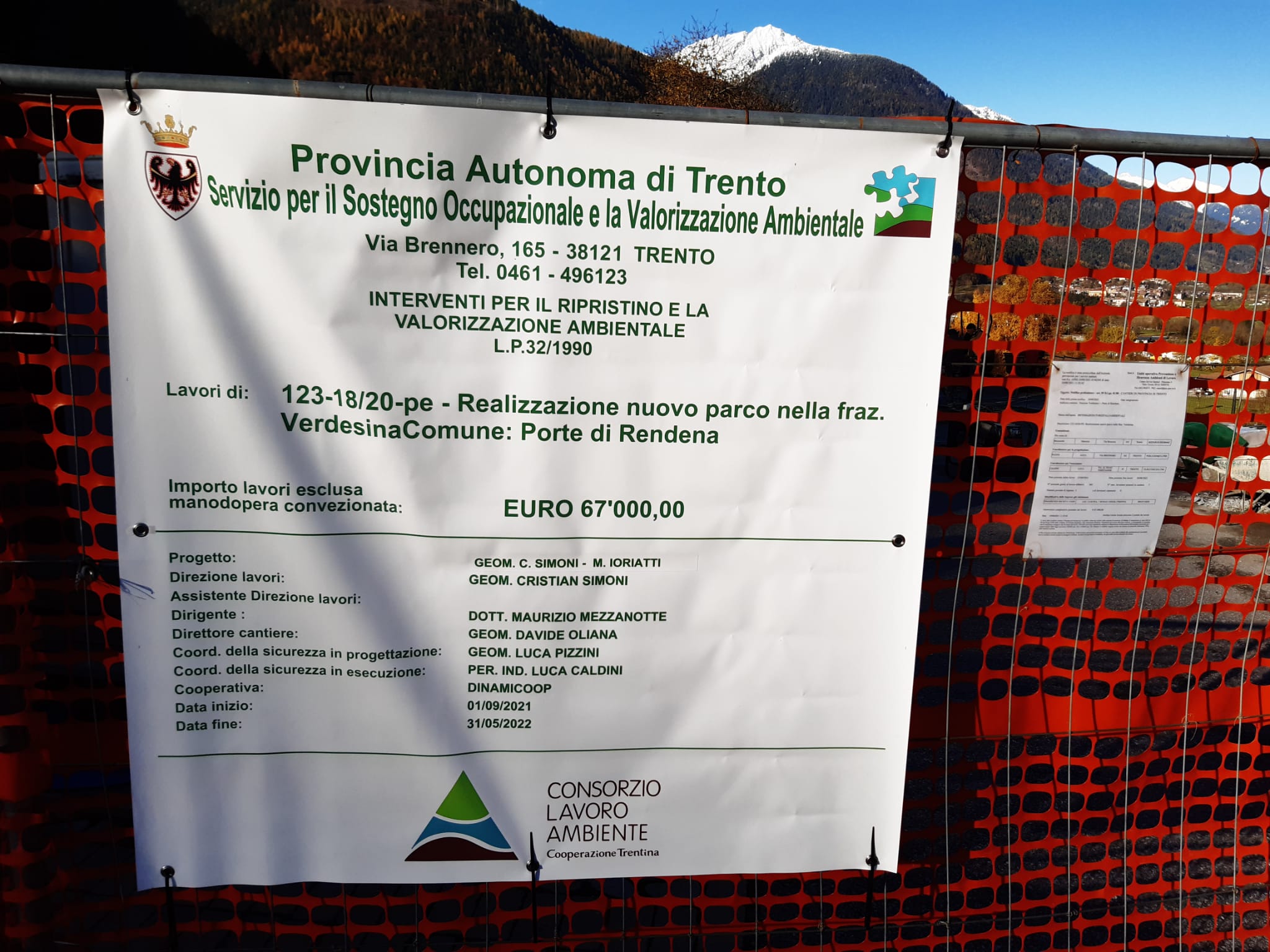PORTE DI RENDENA. Sono cominciati i lavori all’inizio dell’abitato di Verdesina, nella zona adiacente a una recente lottizzazione, per la realizzazione di un’area all’aperto, attrezzata per il relax e per il gioco dei bambini.