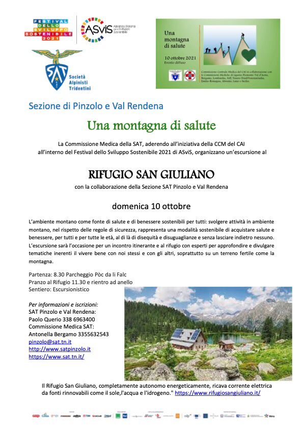 CADERZONE TERME. Una Montagna di Salute: appuntamento domenica 10 ottobre 2021 – c/o Rifugio San Giuliano per una Camminata con esperti di salute