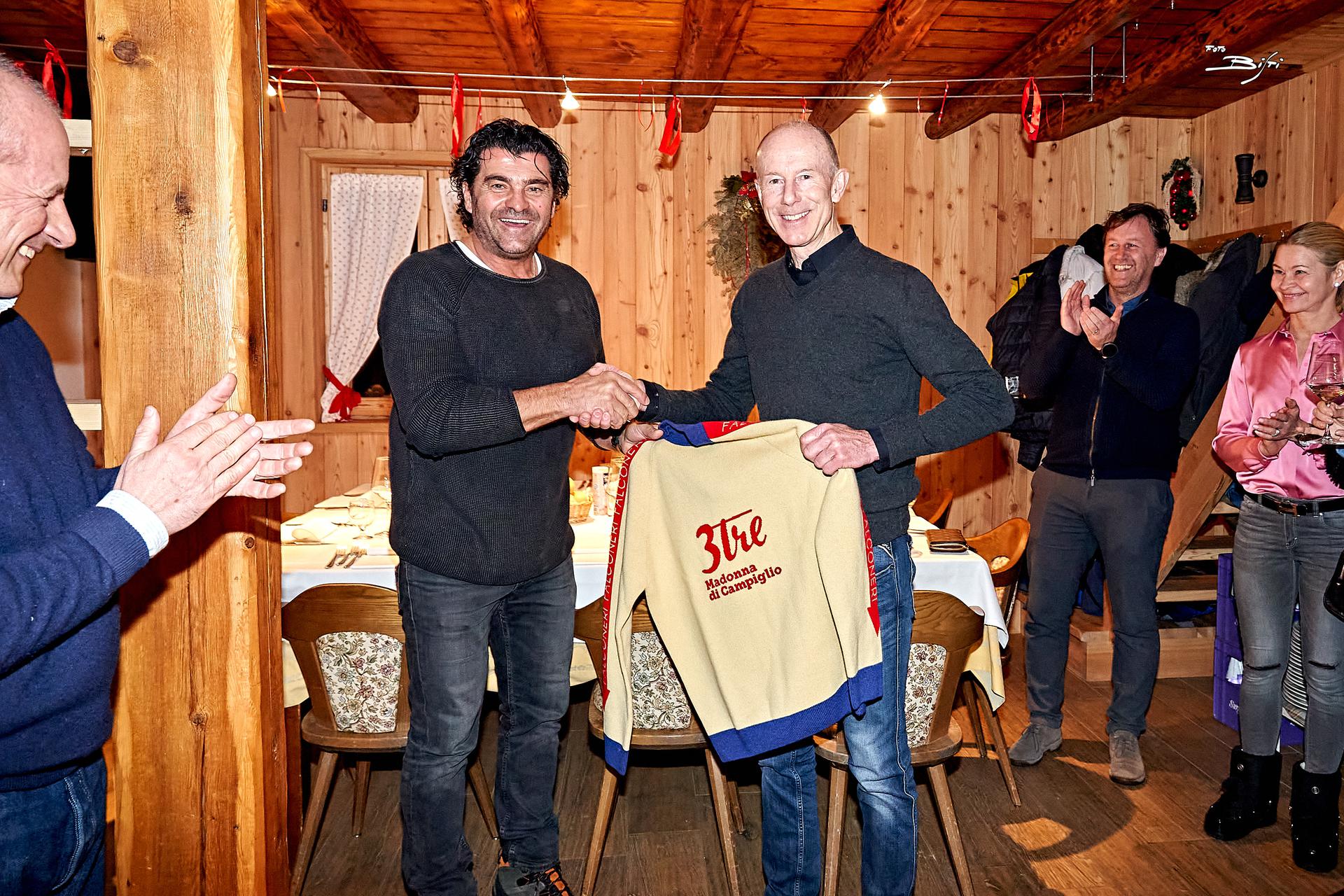 Appena arrivato a Campiglio, Ingemar Stenmark ha ricevuto, presso l’Hotel Savoia, una delegazione in rappresentanza della destinazione. C’erano Tullio Serafini (Presidente dell’Azienda per il Turismo Madonna di Campiglio Pinzolo Val Rendena), Lorenzo Conci (Presidente del Comitato 3Tre), Albert Ballardini (Vicesindaco, in rappresentanza dei Comuni di Pinzolo e Tre Ville) e Bruno Felicetti (Vicedirettore di Funivie Campiglio). A Stenmark è stata consegnata una stampa su tela che lo ritrae, grazie ad una foto storica del prezioso “Archivio Bisti”, giovanissimo vincitore a Campiglio nel 1974, tra Paolo De Chiesa e Fausto Radici.