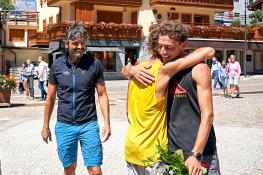 Ad accogliere Cesare Maestri, il "runner delle Dolomiti", dopo il taglio del traguardo, l'altro Cesare Maestri, il "ragno delle Dolomiti". Un incontro emozionante tra il grande alpinista consacrato dalla storia e la medaglia d'argento mondiale di corsa in montagna.