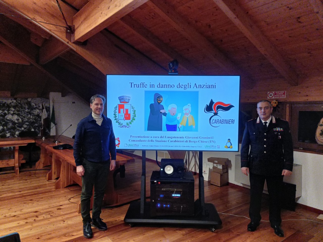 CASTEL CONDINO – Su la scorta di quanto avvenuto giorni fa su la collina di Trento a scapito di persone anziane il maresciallo e comandante della stazione carabinieri di Borgo Chiese Giovanni Granieri, supportato da immagini e sequenze circostanziate , giorni fa ha parlato per quasi due ore e in quell’arco di tempo ha spiegato per filo e per segno come evitare e comportarsi difronte ad eventuali truffe ai danni degli stessi anziani.